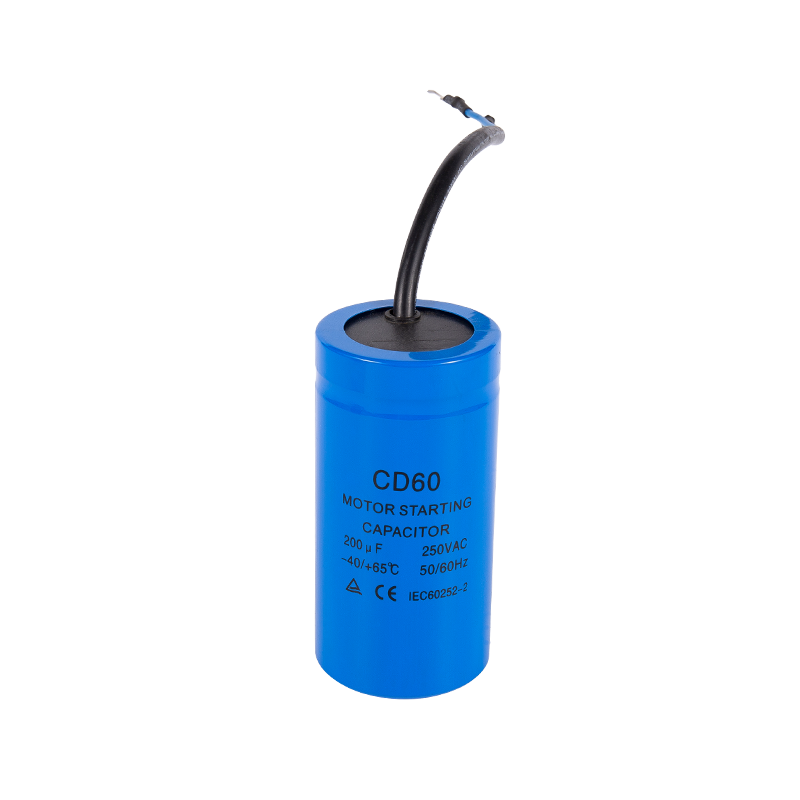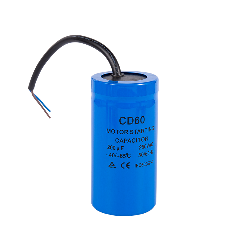 Kondensator startowy CD60 jest używany głównie do startu silnika o wysokim momencie obrotowym, taki jak klimatyzacja i sprężarki zamrażarki, pompy wodne lub inne systemy zasilające jednofazowe silniki asynchroniczne i trójfazowe silniki asynchroniczne wykorzystują zasilacz jednofazowy.